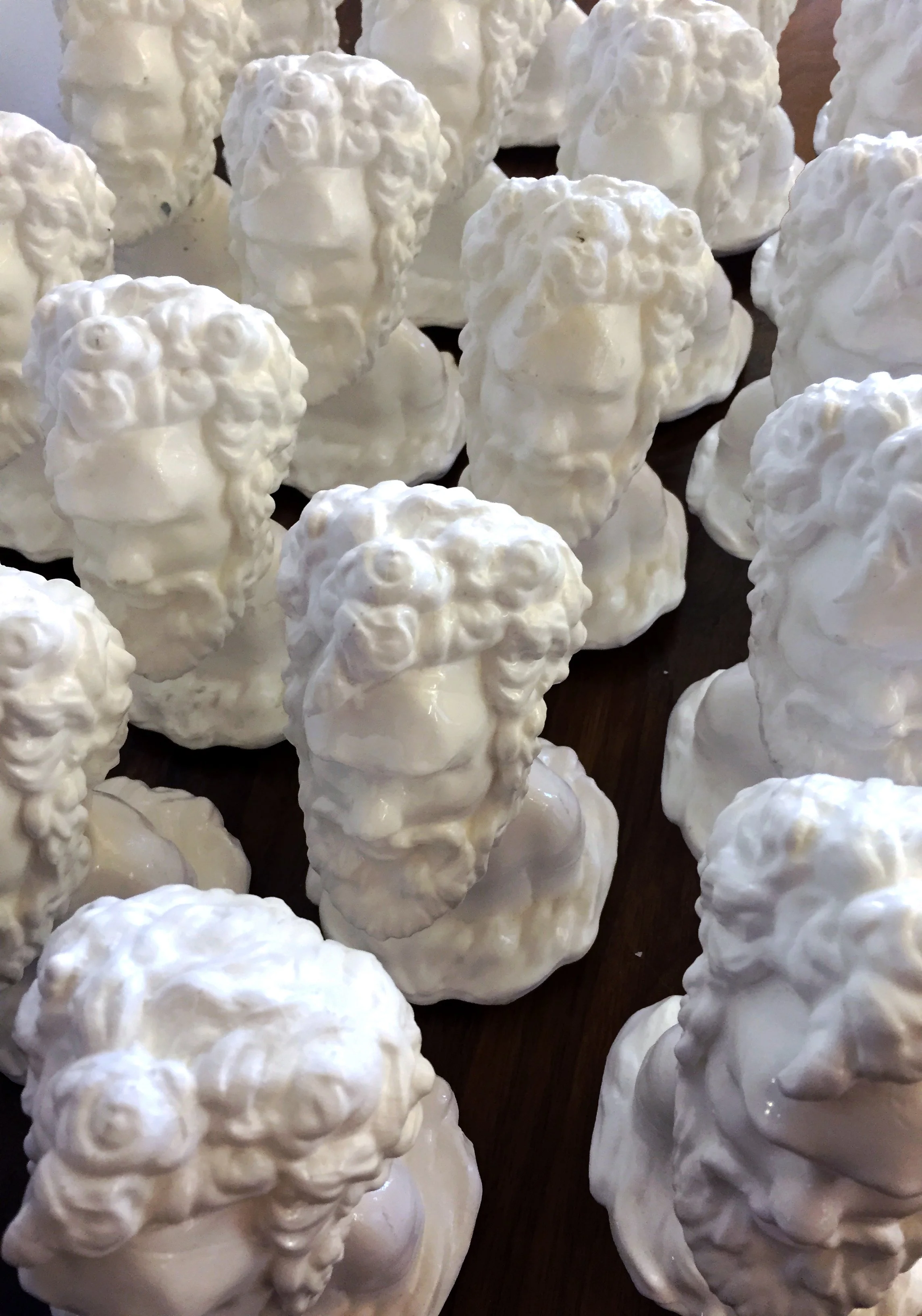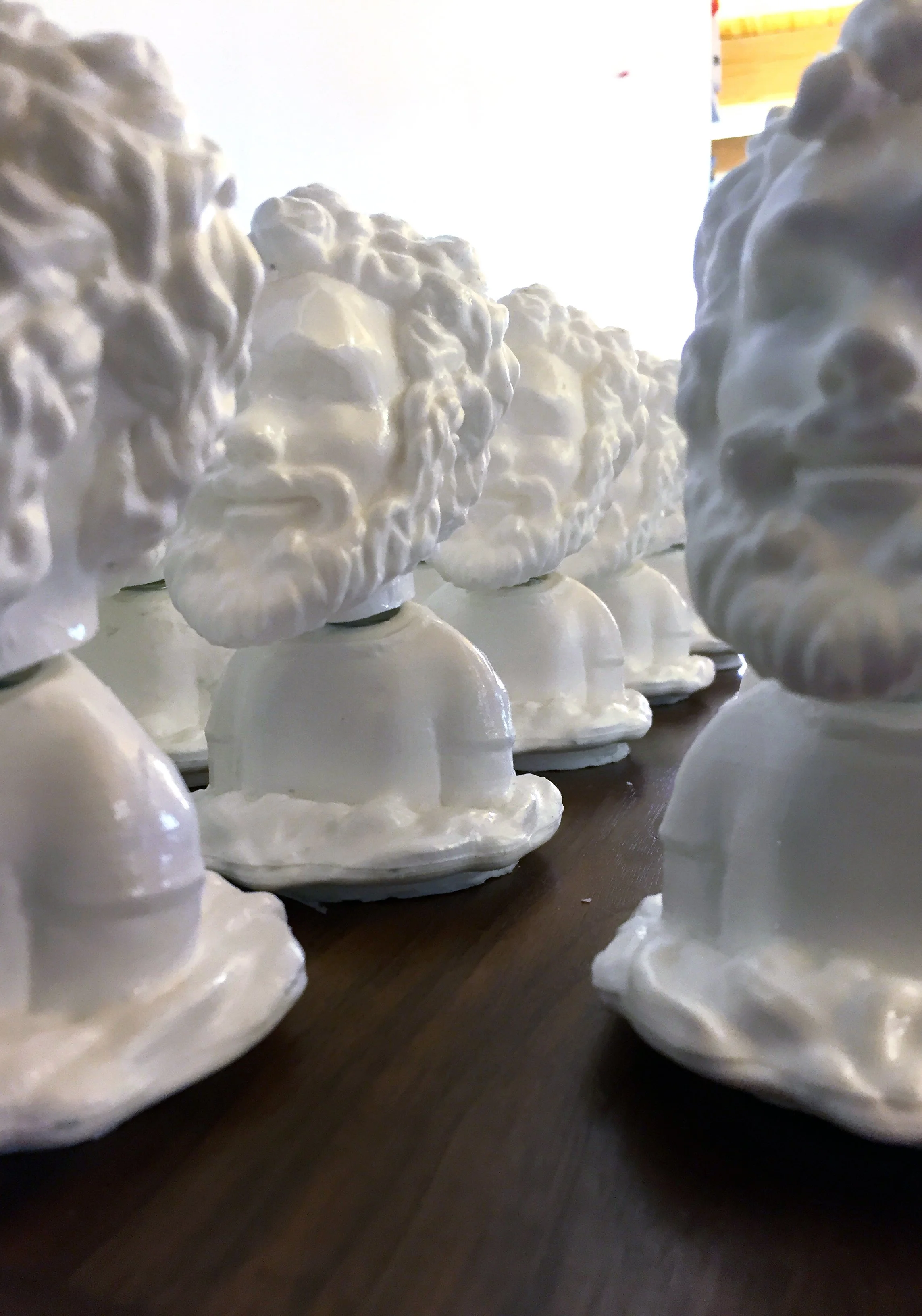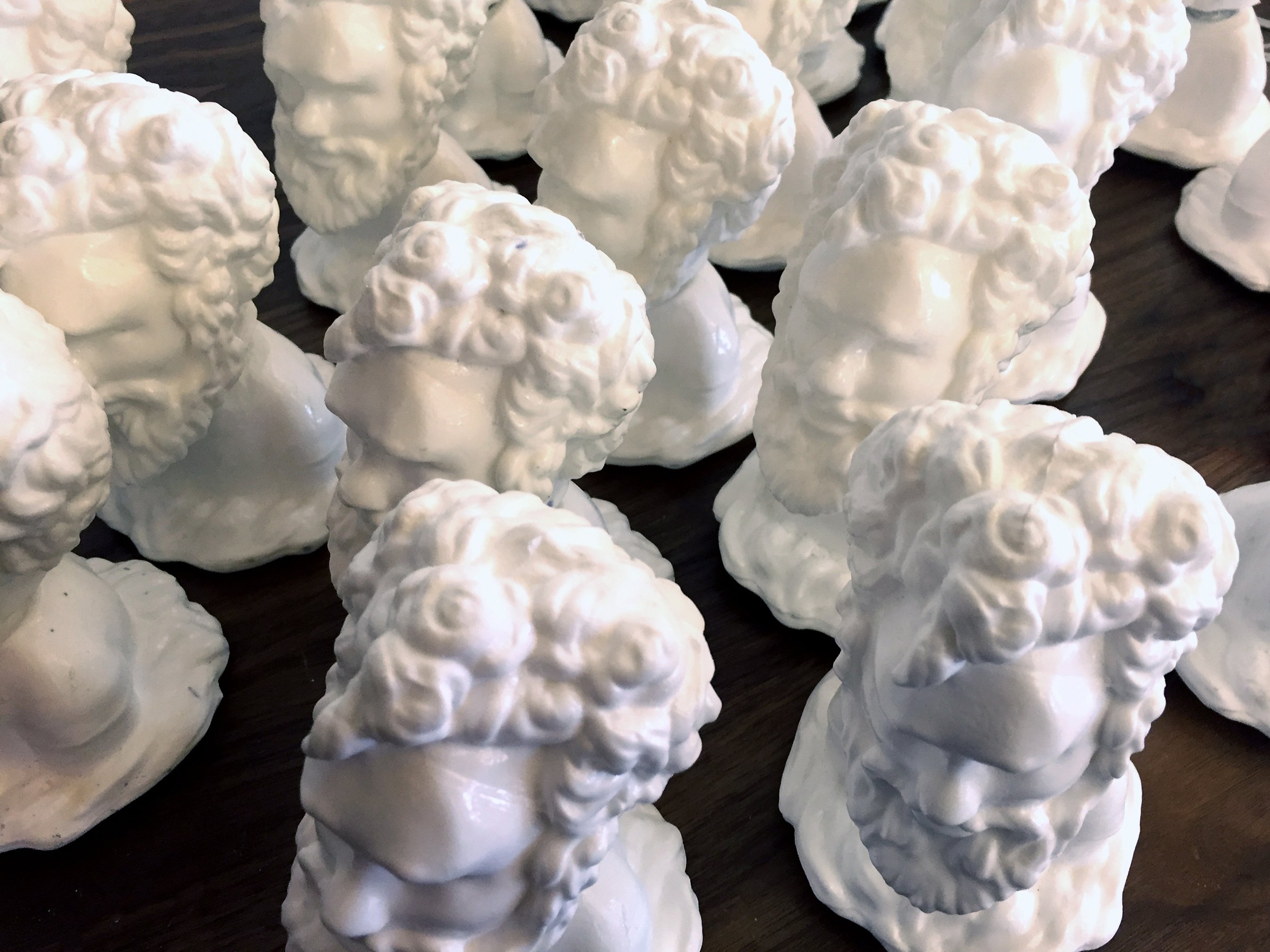 A first for us, architect John Mazzocchi and I sourced a 3D model of the head and bust and printed them. With mostly the help of Youtube, we made a silicone mold and cast roughly 20-25 of the cartoon Willie.