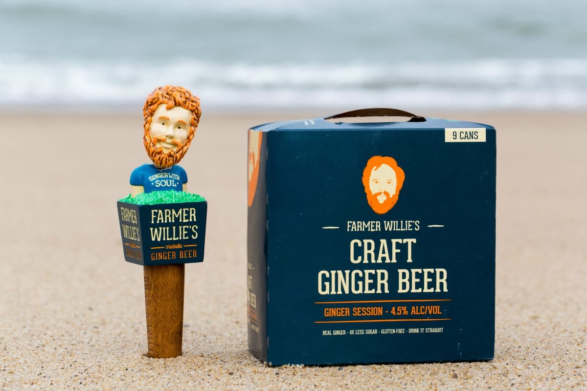 Illustrator Matthew Moffat created the image of Farmer Willie’s Ginger Beer founder… Farmer Willie. The creative team at HEART was then tasked to help him create tap handles. Bobble-head, tap handles.